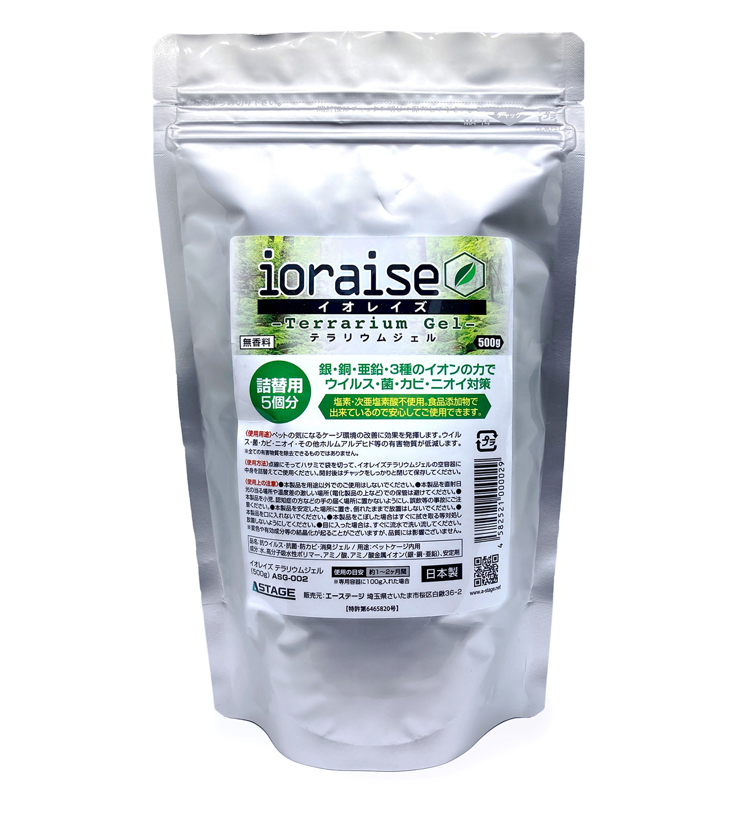 成分:水、高分子吸水性ポリマー、アミノ酸、アミノ酸金属イオン(銀・銅・亜鉛)、安定剤