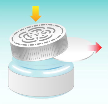 ①内蓋を外してキャップをつける。